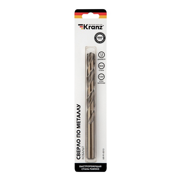 KR-91-0513 Сверло по металлу Kranz Кобальт 12 мм, сталь HSS-Co 5 % M35 P6M5K5 DIN 338
