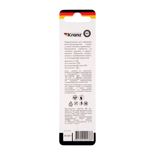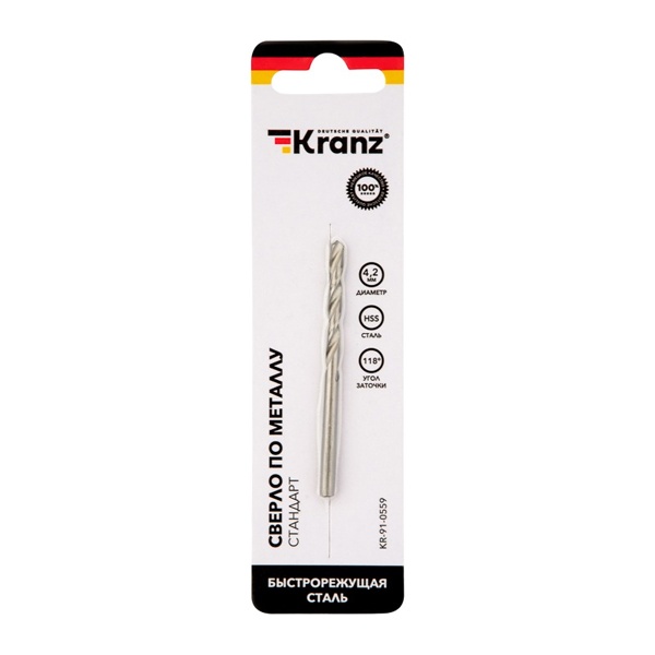 Сверло Кранц по металлу, диаметром 4,2 мм, общая длина 75 мм KR-91-0559