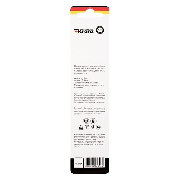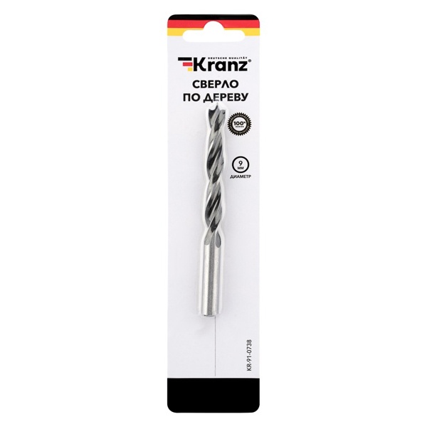 Для сверления отверстий в мягких и твердых породах древесины, ДВП, ДСП и фанере применяют сверло по дереву. Известная компания Kranz представляет такой инструмент винтового типа диаметром 9 мм и длиной 125 мм. Сверло представляет собой тонкий инструмент спирального вида с заостренным концом. Оно сделано из инструментальной стали и оснащено цилиндрическим хвостовиком, который обеспечивает надежную фиксацию оснастки в патроне во время работы. Главным достоинством такого изделия является большой срок службы. Важно использовать его по назначению, чтобы оно преждевременно не вышло из строя. Сверление древесины при помощи такого инструмента позволяет получать точные и аккуратные отверстия с ровными краями и гладкой поверхностью внутренних стенок. Рекомендуется хранить инструмент в упаковке производителя в помещениях с естественной вентиляцией при температуре от -30 до +50 градусов Цельсия. Если сверло заглублять в обрабатываемый материал с небольшой скоростью, то отпадет необходимость в частом извлечении инструмента из создаваемого отверстия для удаления скопившейся стружки.