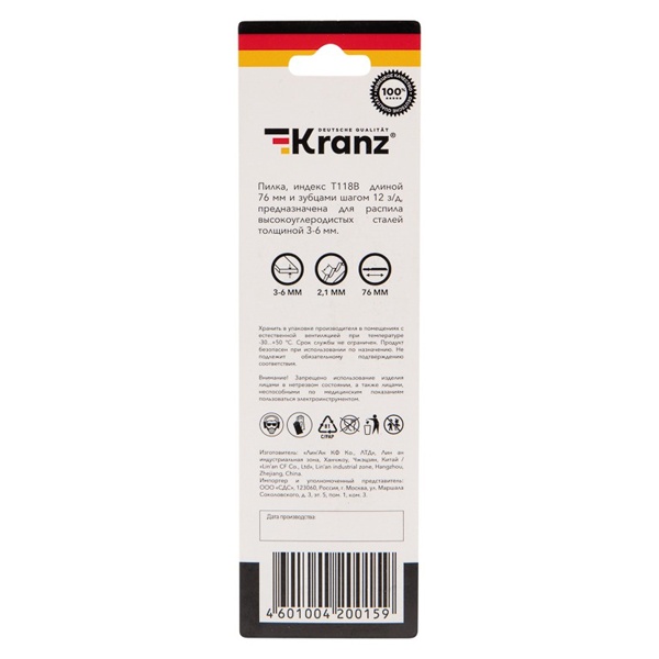 Пильное полотно Кранц для обработки металла электролобзиком KR-92-0313