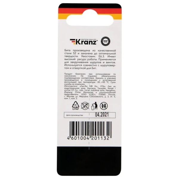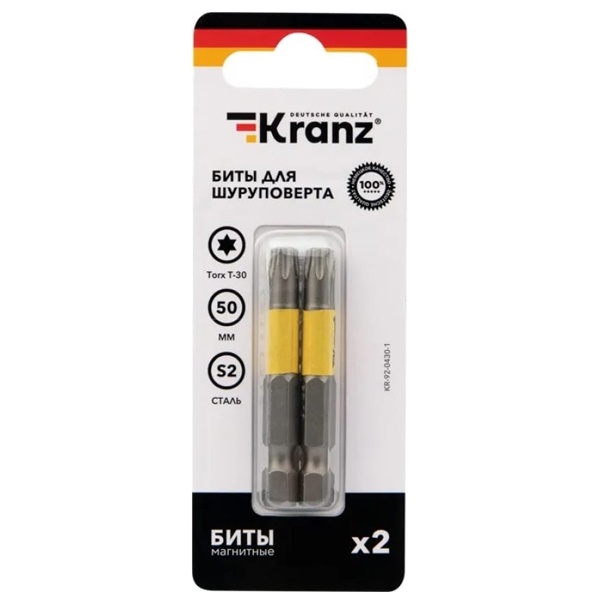 Универсальная удлиненная бита Torx торговой марки Kranz предназначена для винтов Torx размера TX 30. Такой вид насадки имеет форму звезды, ее конструктивная особенность позволяет улучшить сцепляемость с поверхностью крепежного изделия и снизить вероятность соскальзывания приспособления, так как нагрузка распределяется сразу на 6 граней. Бита изготовлена из высококачественной стали и обладает необходимым значением твердости и прочности. Ее длина составляет 50 мм, Насадка имеет универсальное применение и подходит для использования с шуруповертами и отвертками. Ее привод соответствует шестиграннику 1/4 дюйма. Насадка закалена до вязкой твердости, это препятствует преждевременному разрушению ведомого наконечника. Она идеально подходит для тяжелых случаев завинчивания и применяется в машиностроительной области и в производстве бытовой техники для закручивания крепежных элементов с соответствующей формой головки.