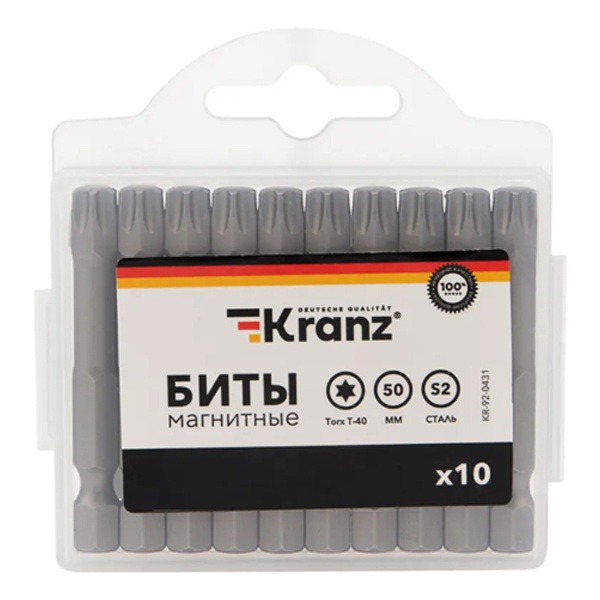 Бита Torx T-40х50 мм (насадка) для закручивания крепежа (шурупы, винты), шестигранный хвостовик (Е6,3), Кранц KR-92-0431