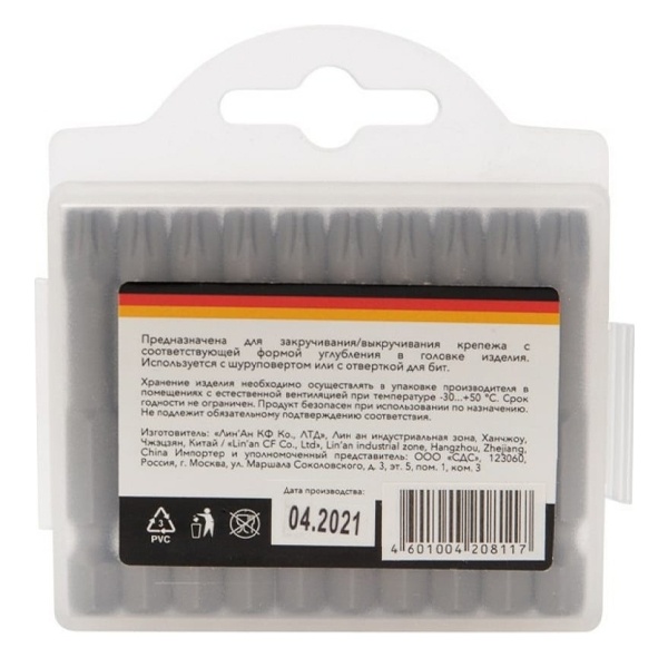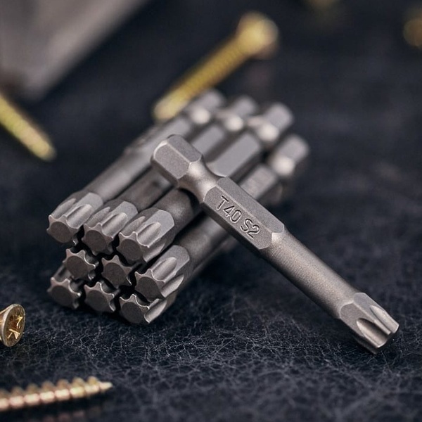 Бита Torx T-40х50 мм (насадка) для закручивания крепежа (шурупы, винты). Произведена из стали S2 и закалена до оптимальной твердости, чем обусловлен высокий ресурс. Шестигранный хвостовик (Е6,3) обеспечивает быструю и надежную фиксацию в шуруповертах. Также используется с отверткой для бит.