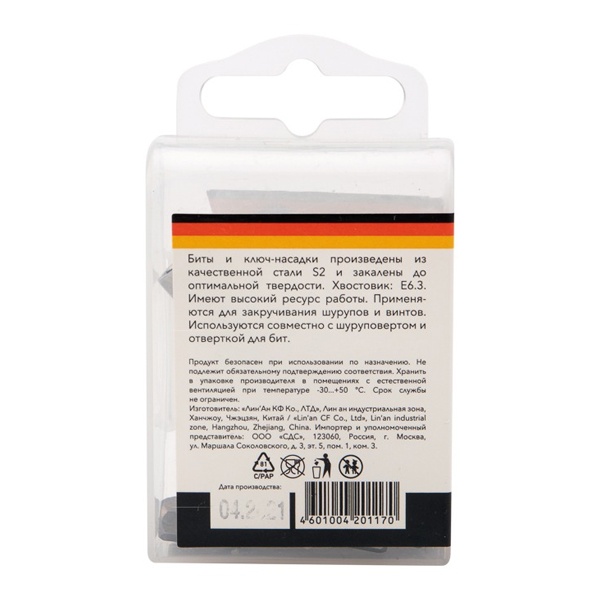 Торговая компания Kranz представляет набор бит с магнитным держателем, который состоит из 7 предметов: 6 различных по типу шлица бит и магнитного держателя. Комплект предназначен для закручивания различных видов крепежа и используется совместно с соответствующим инструментом. Шестигранный хвостовик (Е6.3) обеспечивает быструю и надежную фиксацию в шуруповертах. Также комплект эффективно используется с отвертками для бит. Каждая бита произведена из высококачественной стали S2 и закалена до оптимальной твердости, чем обусловлен высокий ресурс прочности изделий. В набор входят следующие типы шлица: PH1, PH2, PZ1, PZ2, SL5.5 и T30. По виду биты – односторонние безударные с длиной 25 мм. Цветная маркировка шлица отсутствует. Намагниченные наконечники бит обеспечивают удобство работы с крепежами. Комплект поставляется в пластиковом футляре.