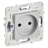 Механизм однопостовой электрической розетки немецкого стандарта с защитными шторками и двумя разъемами USB для зарядки гаджетов, скрытого монтажа ИЭК КВАРТА, цвет белый KV-R14-16-U2-K01