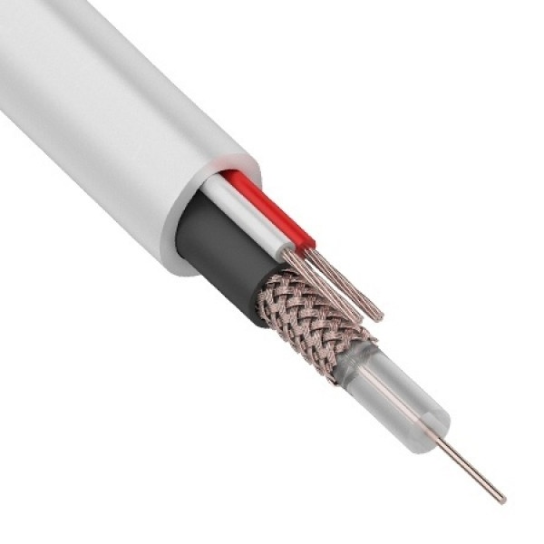 Кабель состоит из радиочастотного (мини коаксиального) кабеля и жил питания объединенных под единой оболочкой. Коаксиальный кабеля состоит из центральной (одножильной) медной жилы, вспененного диэлектрика, экраном из медных 48*0,10мм (72%) жил и изоляции из светостабилизированного полиэтилена PE, аналог кабеля (РК 75-1,5). Жила питания (медная) многожильная, сечением 0,35мм2 в изоляции из ПВХ. Рабочее напряжение токопроводящей жилы до 600В.Общая изоляция из ПВХ и диаметром кабеля 6,3мм.