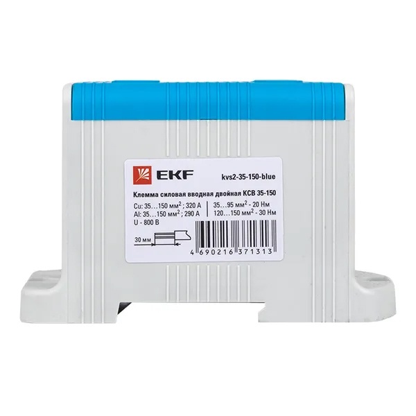 Вводной двухполюсный нулевой клеммник для проводника сечением 35-150 мм2 EKF КСВ, синий цвет kvs2-35-150-blue
