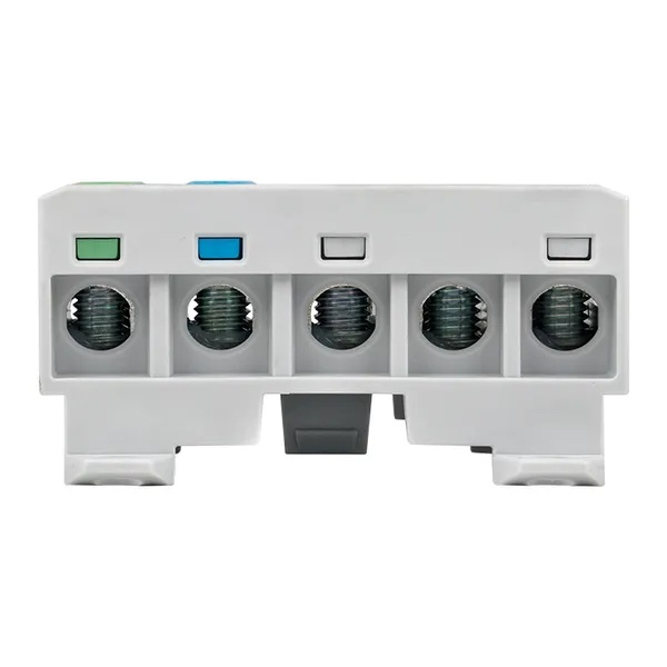 Установка клеммы на DIN-рейку выполняется просто и эффективно благодаря встроенному фиксатору. Монтаж требует минимального усилия: клемма надежно закрепляется после легкого нажатия.