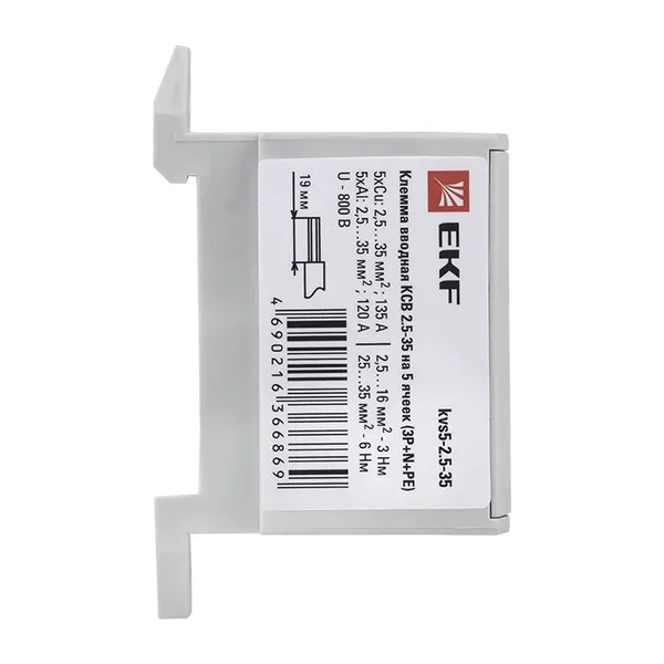Вводной клеммник 5 полюсов для проводника сечением 2,5-35 мм2 EKF КСВ, серый цвет kvs5-2.5-35