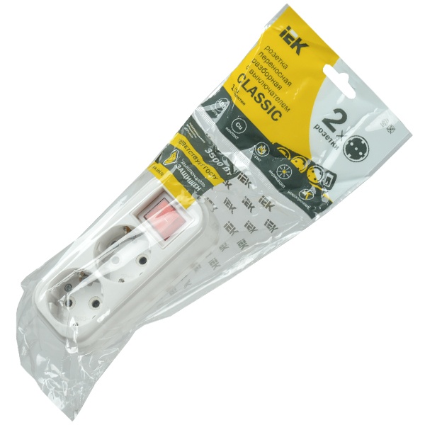 Колодка удлинителя 2-м 16А Classic К02В 2P+PE 250В с выкл. IEK KYP11-16-02-00-ZK
