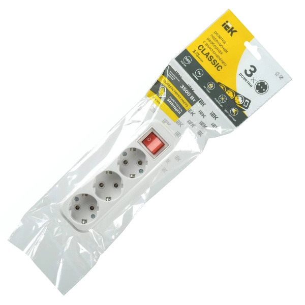Колодка удлинителя 3-м 16А Classic К03В 2P+PE 250В с выкл. IEK KYP11-16-03-00-ZK