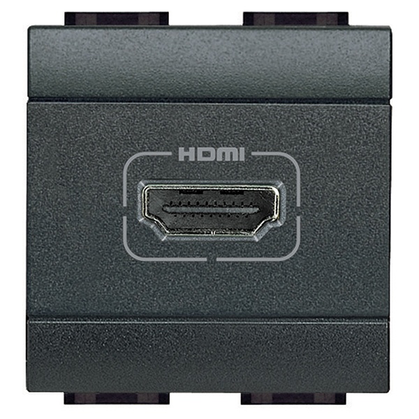 Двухмодульный мультимедийный разъем HDMI, Bticino серии LivingLight, цвет антрацит. L4284
