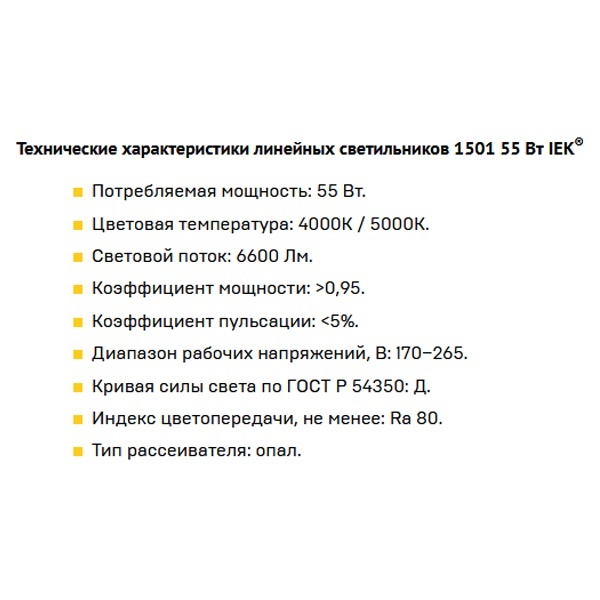 Светодиодный линейный светильник ИЭК, мощностью 55 Ватт, нейтральный белый свет, опаловый рассеиватель LDCK-0-1501-55-4000-K01