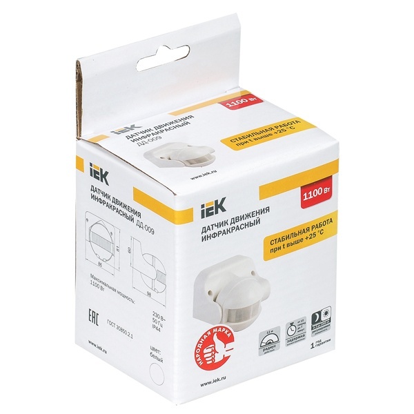 Детектор движения ДД 009 1100Вт угол обз. 180град. дальн. 12м IP44 черн. IEK LDD10-009-1100-002