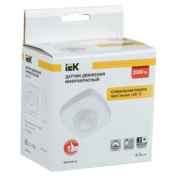 Датчик движения ДД 022 2000Вт угол обз. 360град. 4мх20м IP20 бел. IEK LDD11-022-2000-001