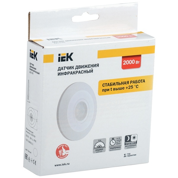Потолочный датчик движения ИЭК мощность нагрузки 2000 Вт, цвет белый LDD11-026-2000-001