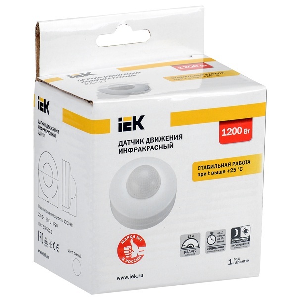 Датчик движения ДД 027 1200Вт угол обз. 360град. 12м IP20 бел. IEK LDD11-027-1200-001