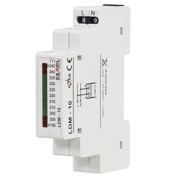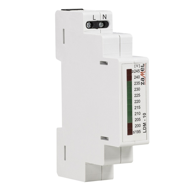 Индикатор напряжения LDM-10 используется для графического представления уровня напряжения в однофазной сети. Напряжение обозначается диодной матрицей, состоящей из 11 светодиодов. Диапазон показаний составляет от 195 до 245 В ~.