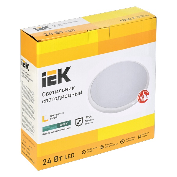 Круглый влагозащищенный светильник светодиодный ДПБ мощность 24 Вт, дневной свет LDPB0-3005-24-4000-K01