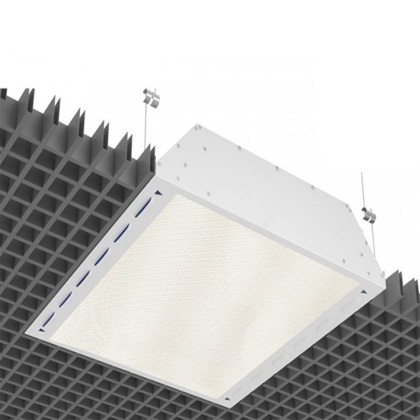 Светильник устанавливается в стандартные ячейки потолка «Армстронг» размером 600х600мм, взамен ранее установленных светильников, либо в дополнение к ним. Также светильник может быть установлен в потолки «ГРИЛЬЯТО» с размерами ячеек 50х50 мм, 100х100 мм, 200х200 мм, светильник снабжен кронштейнами для подвесного монтажа.
