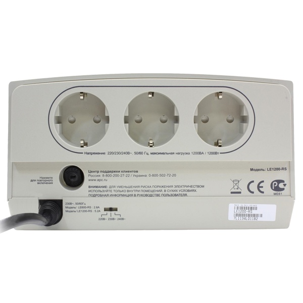 LE1200-RS Стабилизатор напряжения Line-R 1200ВА 220В APC Schneider Electric фото 3