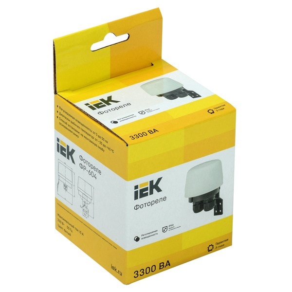 Фотореле IEK ФР 604 — автоматическое устройство управления освещением по уровню естественной освещенности. При наступлении сумерек фотореле включает нагрузку, а при рассвете отключает ее. Модель рассчитана на работу на улице и в помещениях с повышенной влажностью и запыленностью благодаря степени защиты IP66. Корпус выполнен в белом цвете и подходит для установки в большинстве типовых решений наружного освещения.