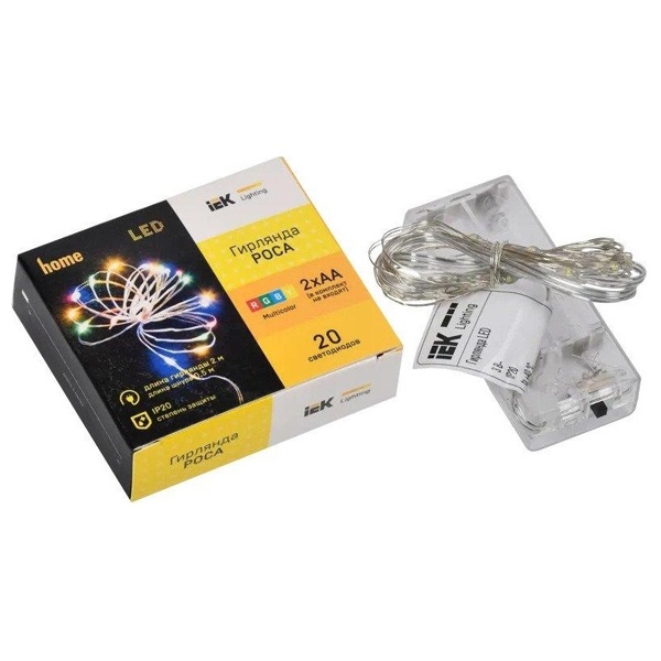 • Гирлянда роса ИЭК 2м 20 светодиодов RGBY IP20 прозрачный шнур 0,5м с питанием от батареек 2xAA