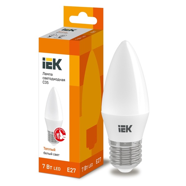 LLE-C35-7-230-30-E27 Лампа светодиодная свеча ИЭК ECO C35 7Вт 220В 3000K E27 тепло-белый свет фото 1