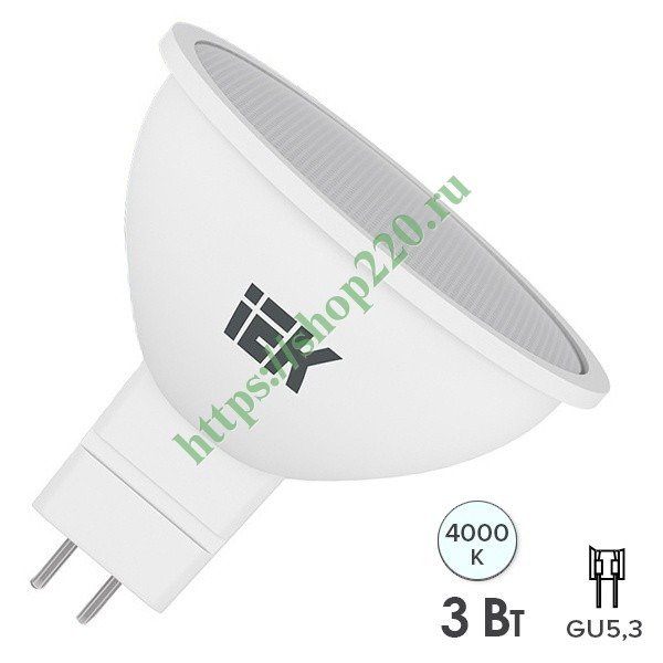 Светодиодная лампочка софит MR16 ИЭК, 3Вт, GU5.3, нейтральный белый свет LLE-MR16-3-230-40-GU5