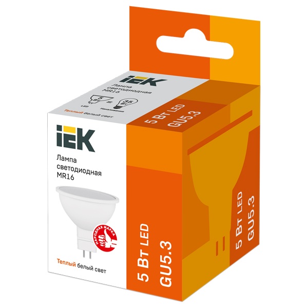 Лампа светодиодная ECO MR16 5Вт 3000К тепл. бел. GU5.3 450лм 230-240В IEK LLE-MR16-5-230-30-GU5