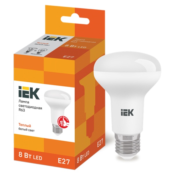 Лампа светодиодная ECO R63 8Вт 3000К тепл. бел. E27 720лм 230-240В IEK LLE-R63-8-230-30-E27