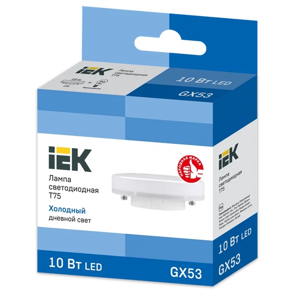 • Лампа светодиодная таблетка ИЭК LED T75 10Вт 6500K 220В GX53 дневной свет
