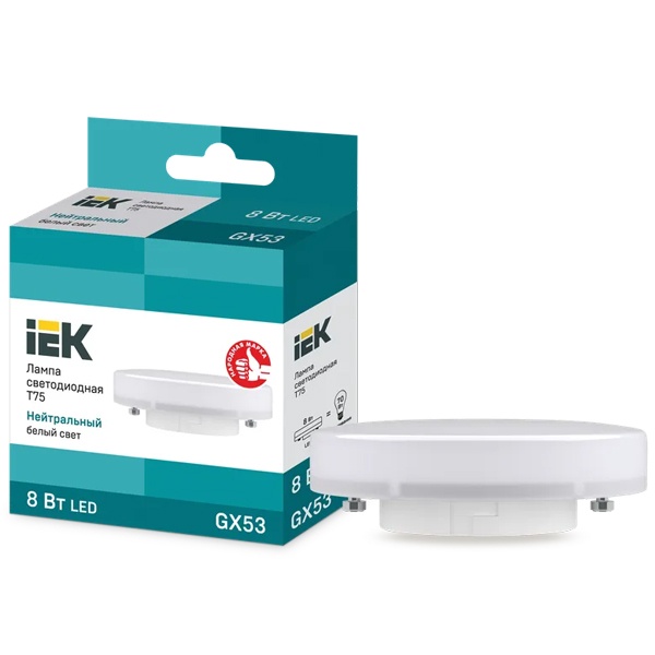 Лампа светодиодная Eco 8Вт T75 таблетка 4000К нейтр. бел. GX53 230В IEK LLE-T80-8-230-40-GX53