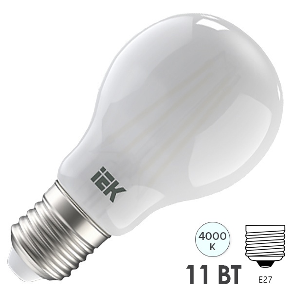 Лампа светодиодная филаментная 360° 11Вт A60 шар матовая 4000К нейтр. бел. E27 230В IEK LLF-A60-11-230-40-E27-FR