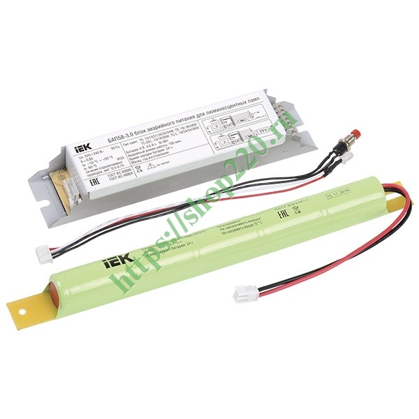 Блок аварийного питания IEK® состоит из: электронного пускорегулирующего аппарата (конвертера), герметичной никель-металл-гидридной аккумуляторной батареи, светодиодного индикатора наличия сети и подзарядки аккумулятора, кнопки «ТЕСТ».