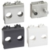 Пластиковый суппорт на 2 модуля с креплением в монтажной коробке на винтах, крепежная рамка выполнена с возможностью объединения в блок на несколько постов по горизонтали и вертикали, имеет размер: 72*72 мм