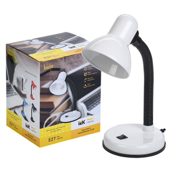 Настольный осветительный прибор ИЭК с патроном E27, с регулировкой наклона и поворота плафона, белого цвета LNNL0-1002-2-VV-40-K01