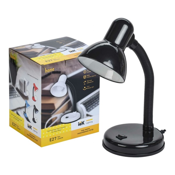 Настольный осветительный прибор ИЭК с патроном E27, с регулировкой наклона и поворота плафона, черного цвета LNNL0-1002-2-VV-40-K02