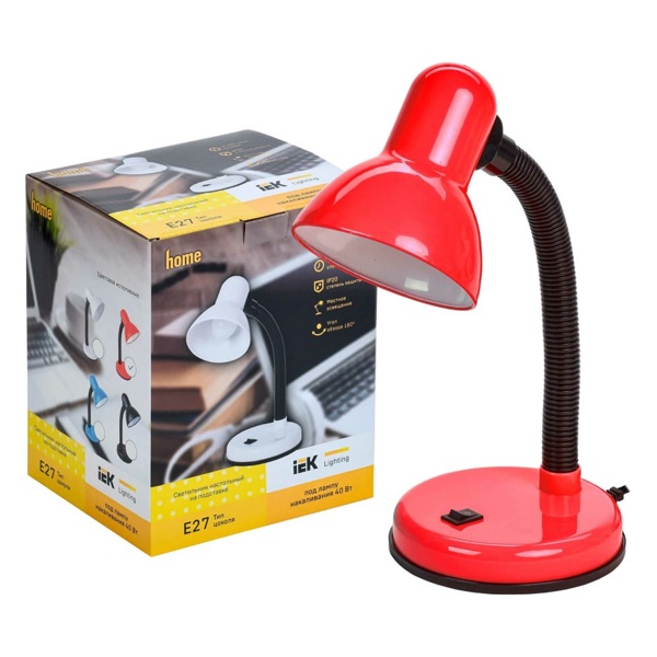Настольный осветительный прибор ИЭК с патроном E27, с регулировкой наклона и поворота плафона, красного цвета LNNL0-1002-2-VV-40-K04