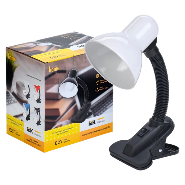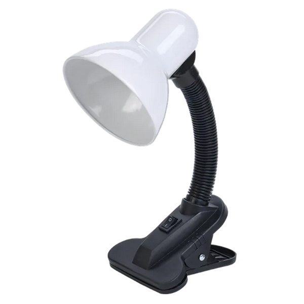 Настольный осветительный прибор с креплением прищепка ИЭК с патроном E27, с регулировкой наклона и поворота плафона, белого цвета LNNL1-1001-2-VV-40-K01