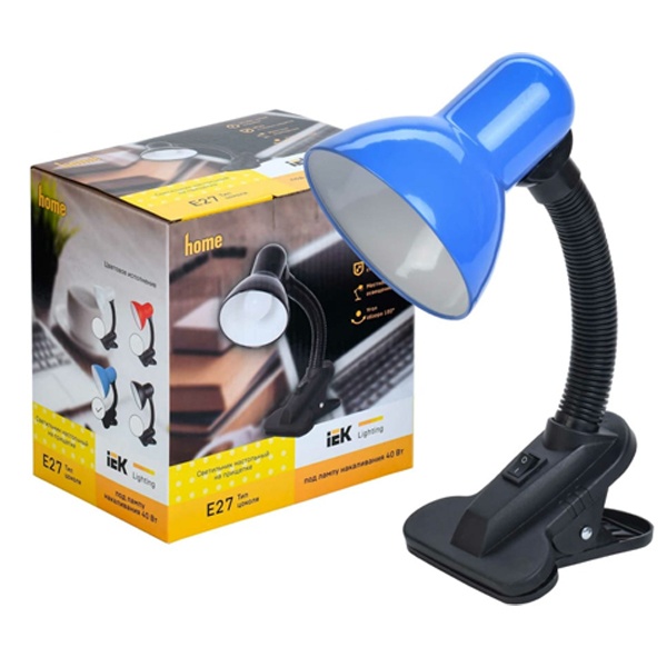 Светильник настольный 1001 на прищепке Е27 син. IEK LNNL1-1001-2-VV-40-K07