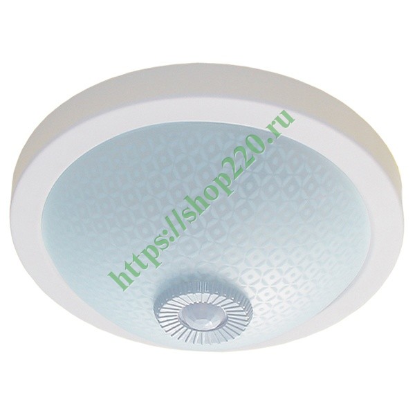 Светильник тарелка, настенно-потолочный 2x25 Вт c ИК датчиком движения, под лампы LED/КЛЛ, цвет корпуса белый, рассеиватель из матового стекла LNPO0-3236D-2-025-K01