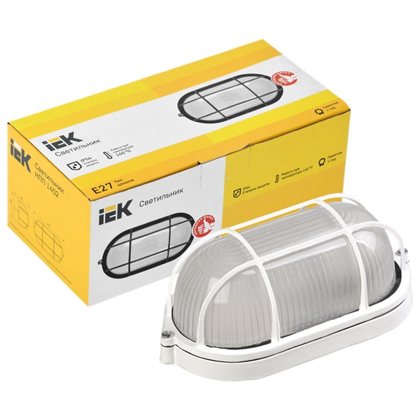 Светильник ИЭК НПП1402 белый/овал с решеткой 60Вт IP54 LNPP0-1402-1-060-K01