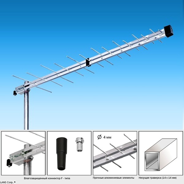 Антенна эфирная Lans LP-14 усиление 10-12 дБ (аналог/ DVB-T/ DVB-T2) 14 элементов, 103,5см LP-14
