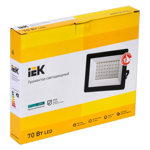 Прожектор светодиодный, влагозащищенный СДО 06-70, 70Вт, белый свет, черный LPDO601-070-40-K02
