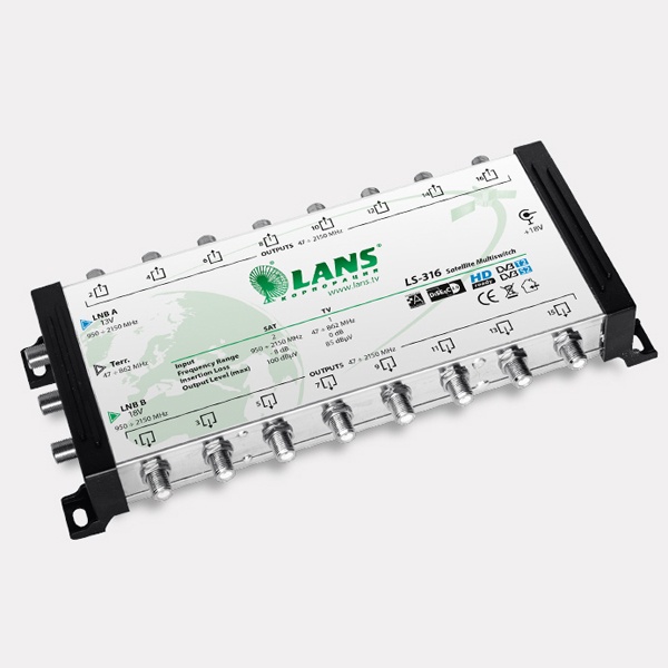 LS 316 Мультисвитч Lans 3 х 16 3 входа (2 SAT + 1 TV), 16 выходов, активный, с внешним блоком питания