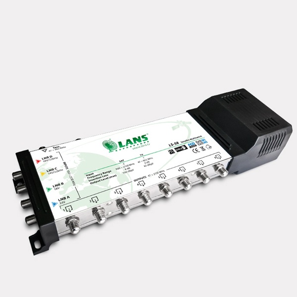 LS 58 Мультисвитч Lans 5 х 8 5 входов (4 SAT + 1 TV), 8 выходов, активный, встроенный блок питания