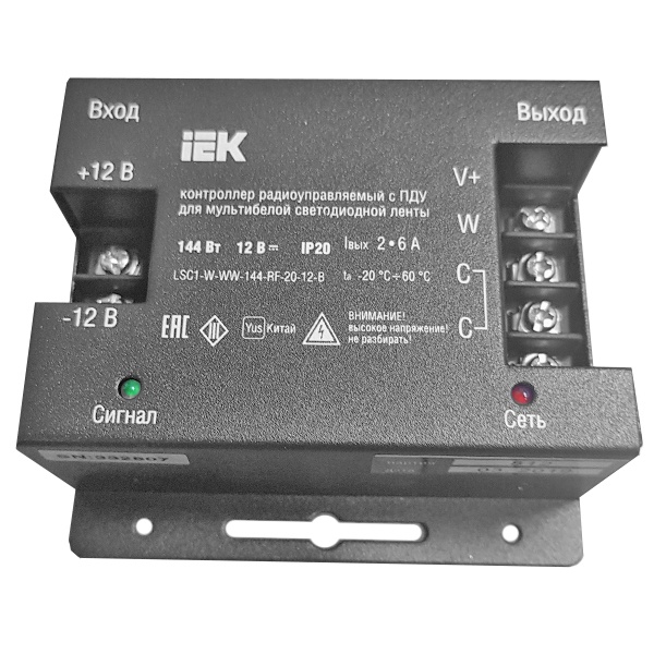 Контроллер радиоуправляемый с ПДУ для мультибелой светодиодной ленты 2 канала 12В, 6А, 144Вт, черный ИЭК LSC1-W-WW-144-RF-20-12-B