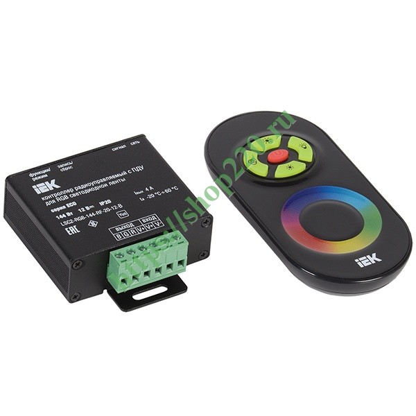 Контроллер радиоуправляемый с ПДУ для RGB светодиодной ленты 3 канала 12В, 4А, 144Вт, черный IEK-eco LSC2-RGB-144-RF-20-12-B