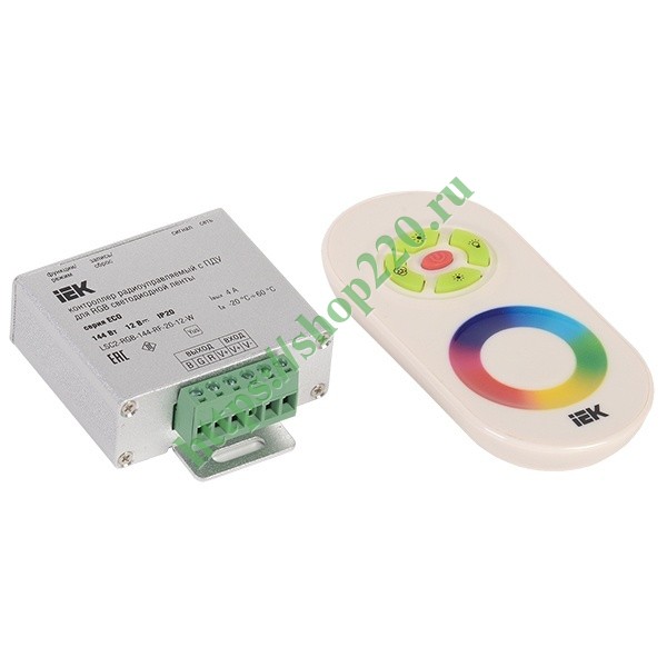 Контроллер радиоуправляемый с ПДУ для RGB светодиодной ленты 3 канала 12В, 4А, 144Вт, белый IEK-eco LSC2-RGB-144-RF-20-12-W